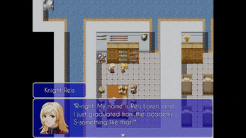 Blue Allegiance, in its current state, is about a 2 hour long prologue with a small beginning of chapter one. The game itself is a standard story-driven RPG with a CTB-type battle system with turn orders. The story follows the actions of a newly appointed Captain of the Royal Army in the Kingdom of Leist, a nation recovering from a short-lived civil war. The city knights can no longer keep up with their daily tasks. Calling upon the Royal Army for aid, the main character, accompanied by a small group of newly graduated knights, starts to patrol the Royal City in order to maintain order after the war. While the conflict may be over, the threat hanging over the Kingdom has yet to vanish.